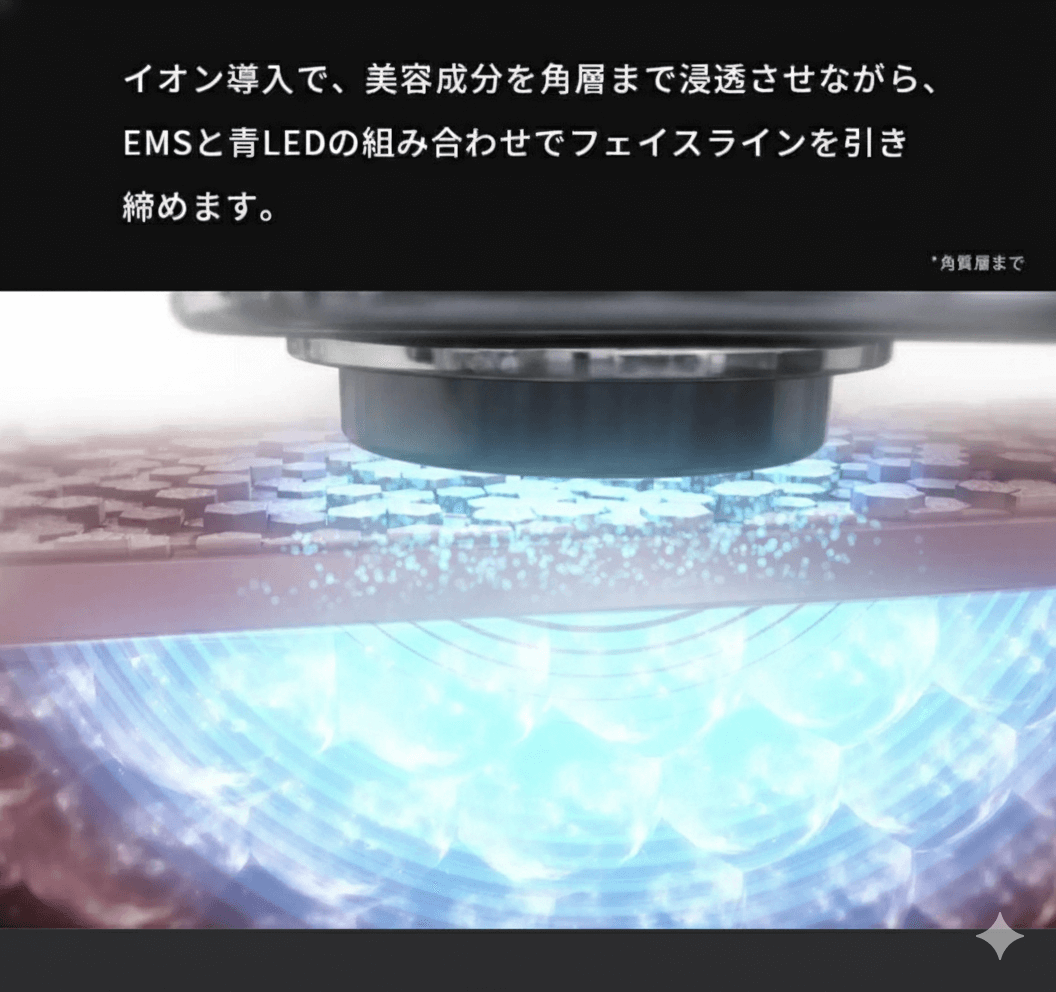 トリプル波EMS+青色LEDで”フェイスラインをキュッと引き締め”