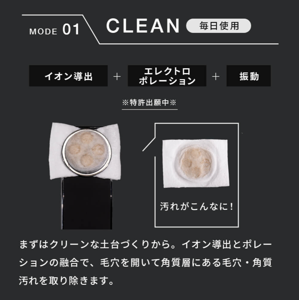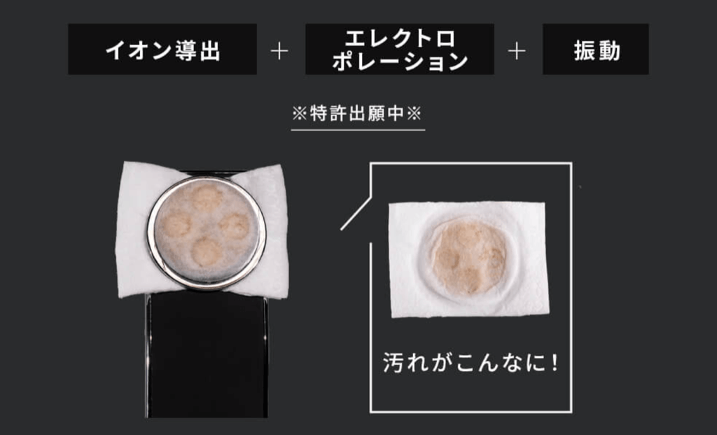 そのうえで、イオン導出で汚れを吸い出すので、通常のイオン導出では届かない奥の毛穴・角質汚れまで除去できます。